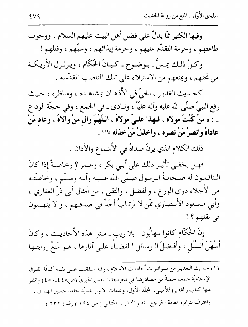 نام کتاب : تدوين السنة الشريفة، بدايته المبكرة في عهد الرسول ص ومصيره في عهود الخلفاء إلى نهاية القرن الأول نویسنده : السيد محمد رضا الحسيني الجلالي جلد : 1 صفحه : 479