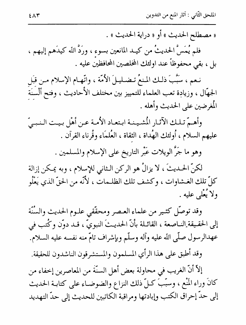 نام کتاب : تدوين السنة الشريفة، بدايته المبكرة في عهد الرسول ص ومصيره في عهود الخلفاء إلى نهاية القرن الأول نویسنده : السيد محمد رضا الحسيني الجلالي جلد : 1 صفحه : 483