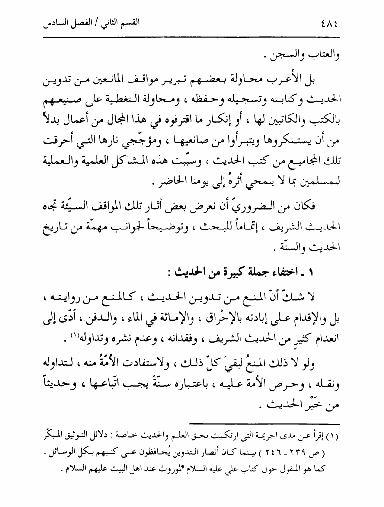 نام کتاب : تدوين السنة الشريفة، بدايته المبكرة في عهد الرسول ص ومصيره في عهود الخلفاء إلى نهاية القرن الأول نویسنده : السيد محمد رضا الحسيني الجلالي جلد : 1 صفحه : 484