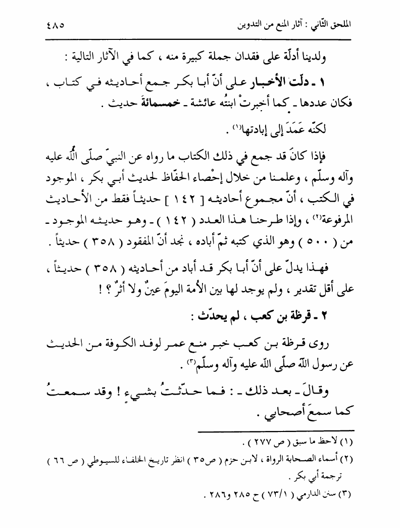 نام کتاب : تدوين السنة الشريفة، بدايته المبكرة في عهد الرسول ص ومصيره في عهود الخلفاء إلى نهاية القرن الأول نویسنده : السيد محمد رضا الحسيني الجلالي جلد : 1 صفحه : 485