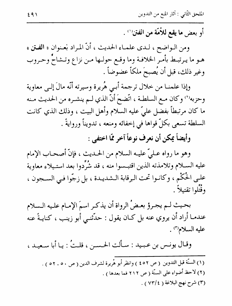 نام کتاب : تدوين السنة الشريفة، بدايته المبكرة في عهد الرسول ص ومصيره في عهود الخلفاء إلى نهاية القرن الأول نویسنده : السيد محمد رضا الحسيني الجلالي جلد : 1 صفحه : 491