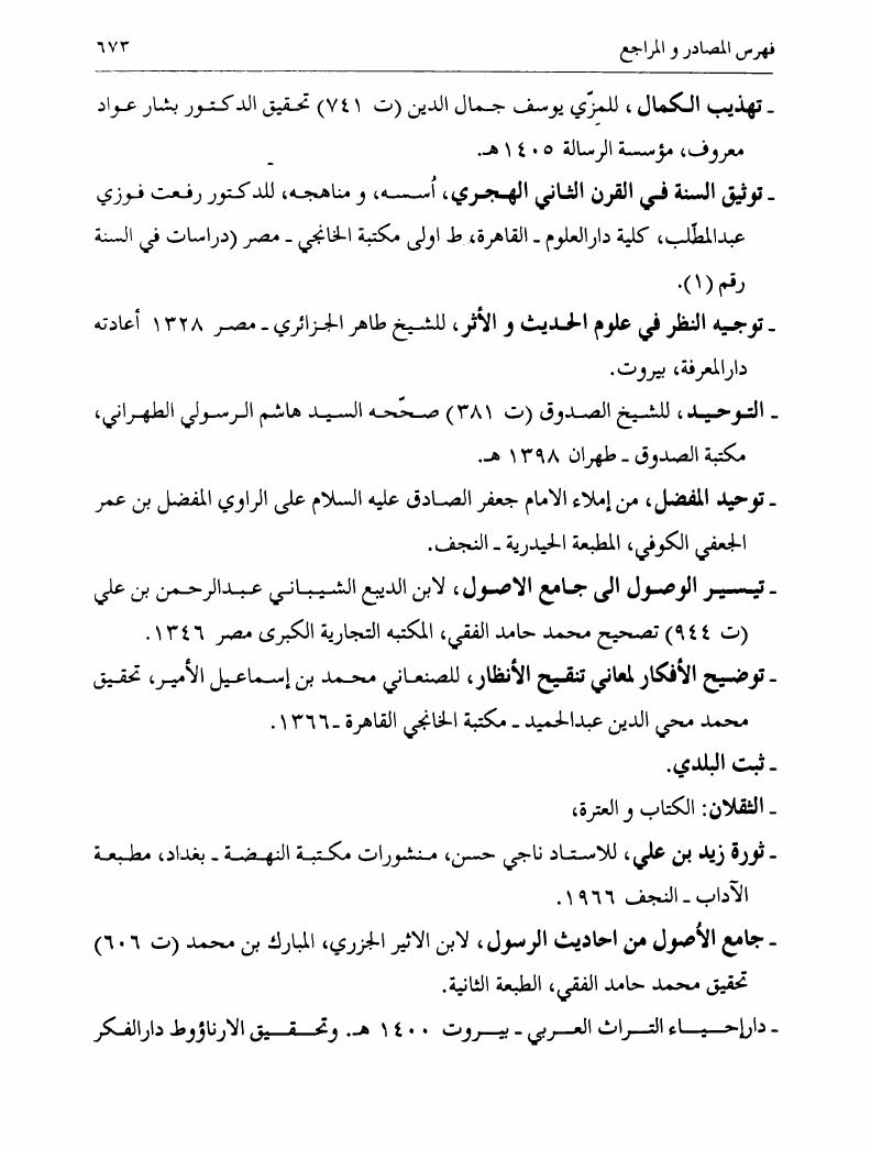نام کتاب : تدوين السنة الشريفة، بدايته المبكرة في عهد الرسول ص ومصيره في عهود الخلفاء إلى نهاية القرن الأول نویسنده : السيد محمد رضا الحسيني الجلالي جلد : 1 صفحه : 673