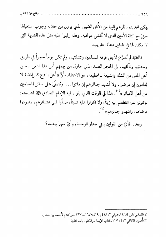 نام کتاب : دفاع عن الكافي، دراسة نقدية مقارنة لأهم الطعون والشبهات المثارة حول كتاب الكافي للشيخ الكليني - ج1 ج2 نویسنده : ثامر هاشم حبيب العميدي جلد : 1 صفحه : 656