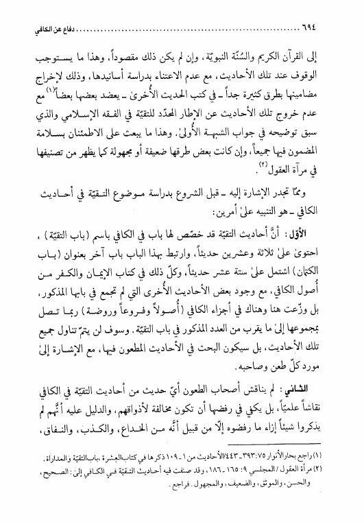 نام کتاب : دفاع عن الكافي، دراسة نقدية مقارنة لأهم الطعون والشبهات المثارة حول كتاب الكافي للشيخ الكليني - ج1 ج2 نویسنده : ثامر هاشم حبيب العميدي جلد : 1 صفحه : 694