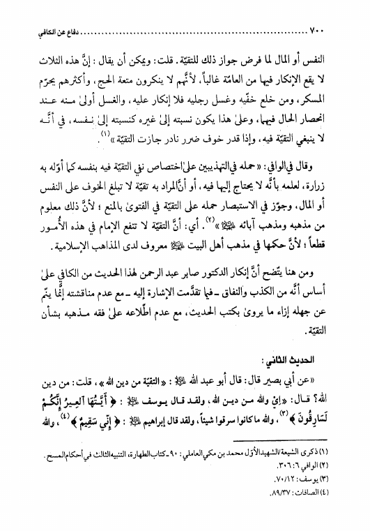 نام کتاب : دفاع عن الكافي، دراسة نقدية مقارنة لأهم الطعون والشبهات المثارة حول كتاب الكافي للشيخ الكليني - ج1 ج2 نویسنده : ثامر هاشم حبيب العميدي جلد : 1 صفحه : 700