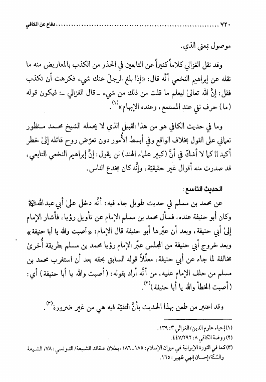 نام کتاب : دفاع عن الكافي، دراسة نقدية مقارنة لأهم الطعون والشبهات المثارة حول كتاب الكافي للشيخ الكليني - ج1 ج2 نویسنده : ثامر هاشم حبيب العميدي جلد : 1 صفحه : 720