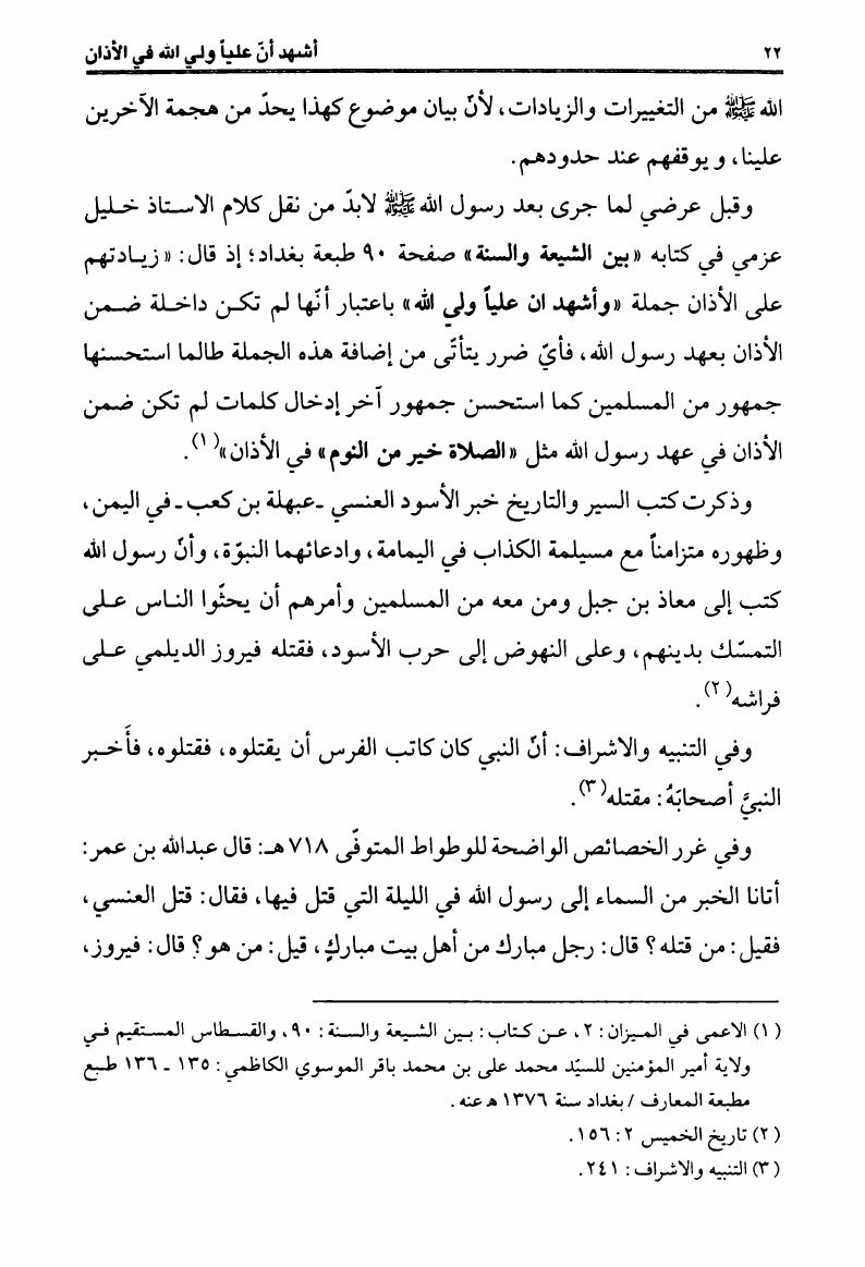 أشهد أن عليا ولي الله، في الأذان بين الشرعية والإبتداع