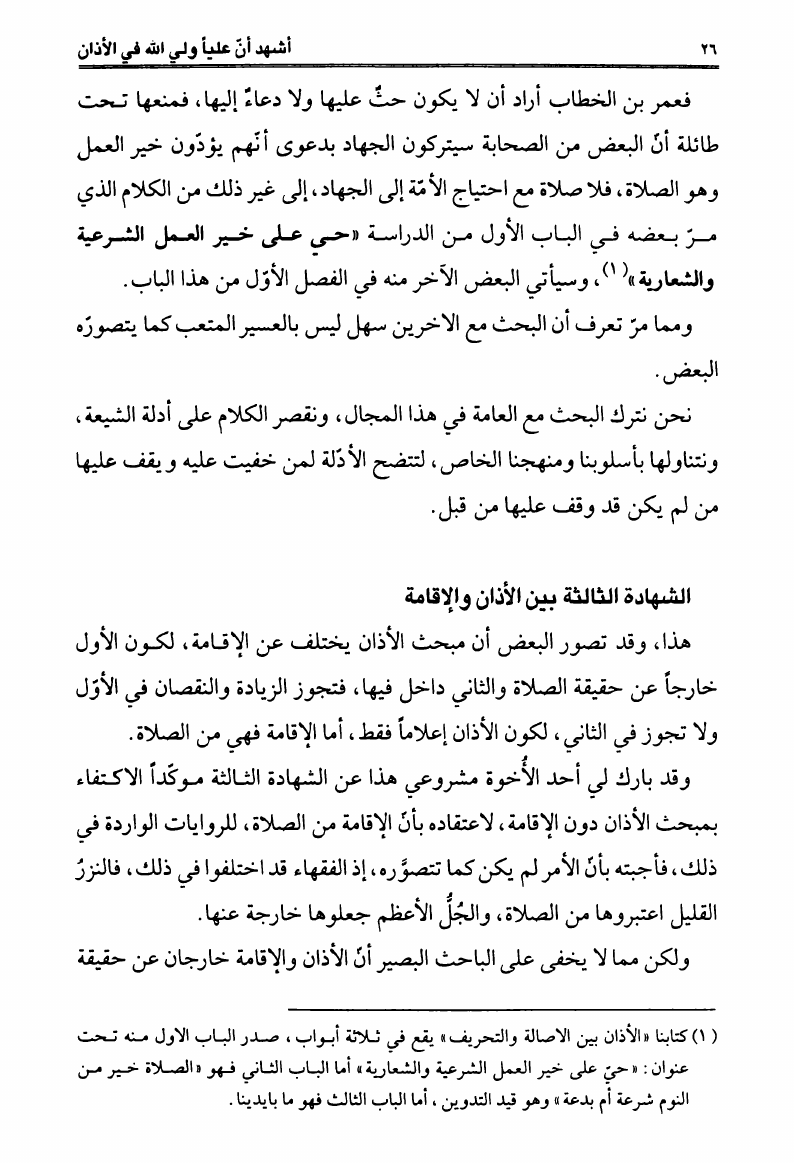أشهد أن عليا ولي الله، في الأذان بين الشرعية والإبتداع