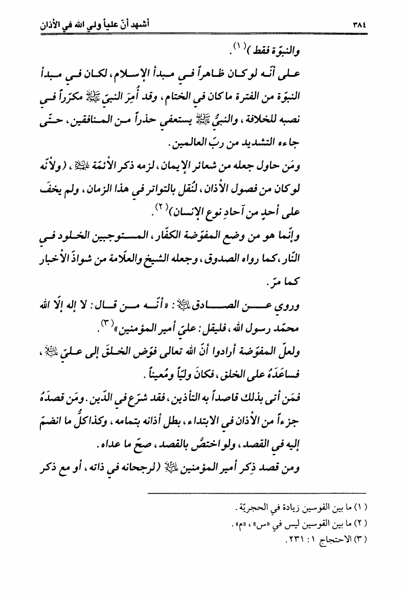 أشهد أن عليا ولي الله، في الأذان بين الشرعية والإبتداع