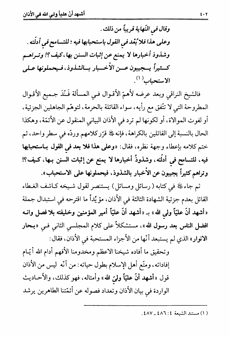 أشهد أن عليا ولي الله، في الأذان بين الشرعية والإبتداع