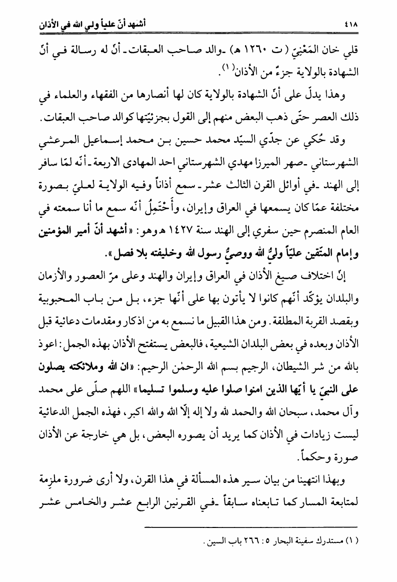 أشهد أن عليا ولي الله، في الأذان بين الشرعية والإبتداع