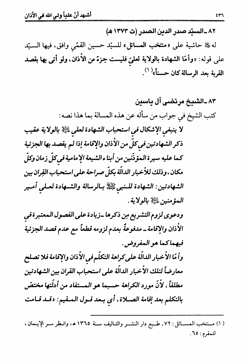 أشهد أن عليا ولي الله، في الأذان بين الشرعية والإبتداع