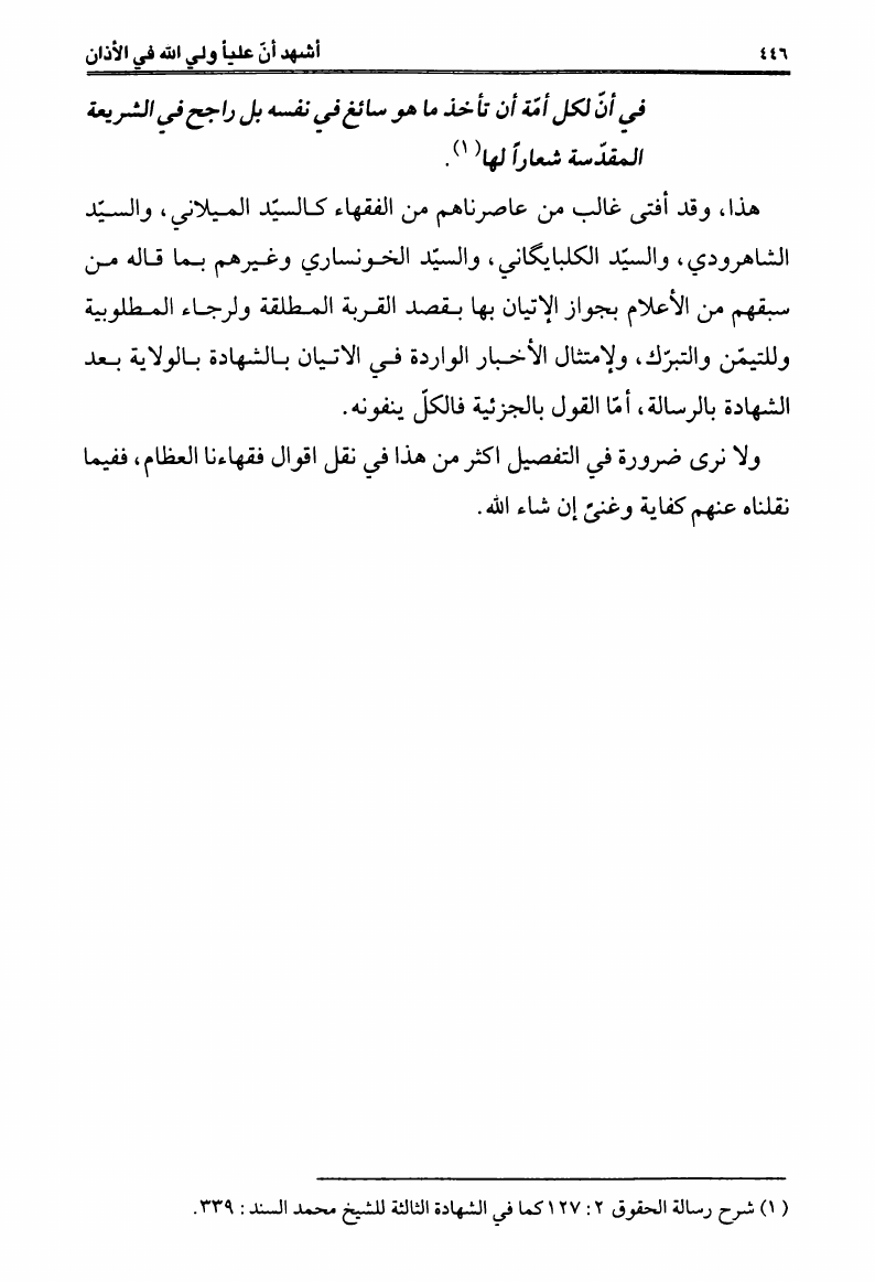 أشهد أن عليا ولي الله، في الأذان بين الشرعية والإبتداع
