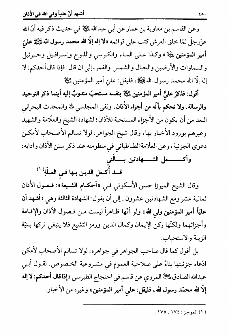 أشهد أن عليا ولي الله، في الأذان بين الشرعية والإبتداع