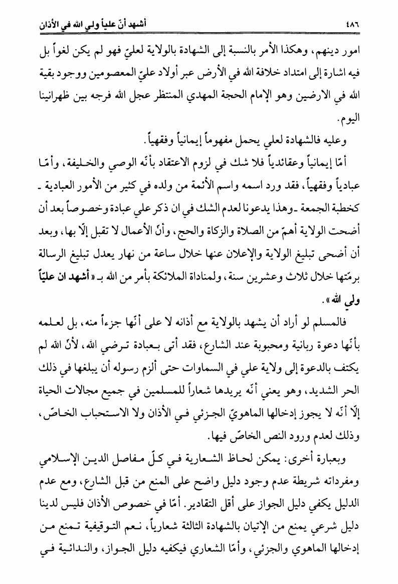 أشهد أن عليا ولي الله، في الأذان بين الشرعية والإبتداع