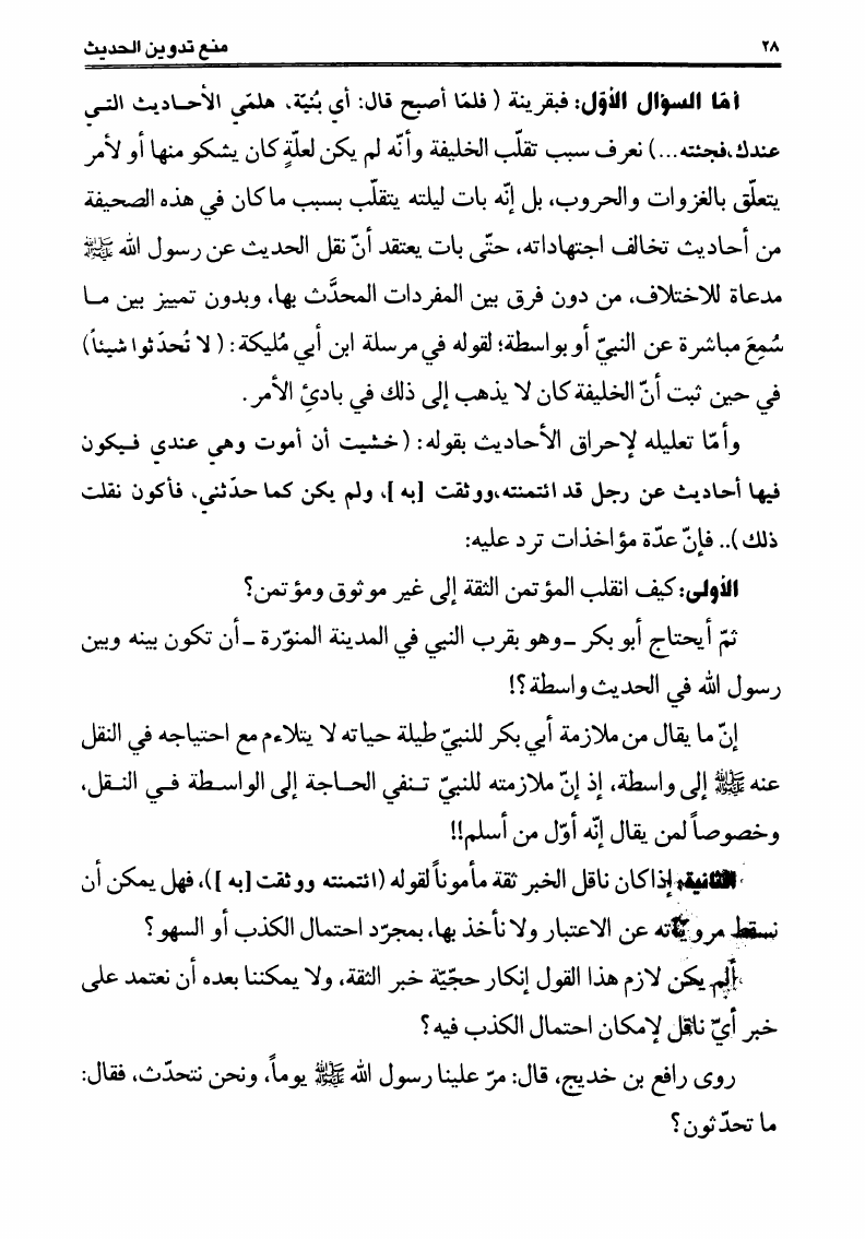 منع تدوين الحديث، قراءة في منهجة الفكر وأصول مدرستي الحديث عند المسلمين