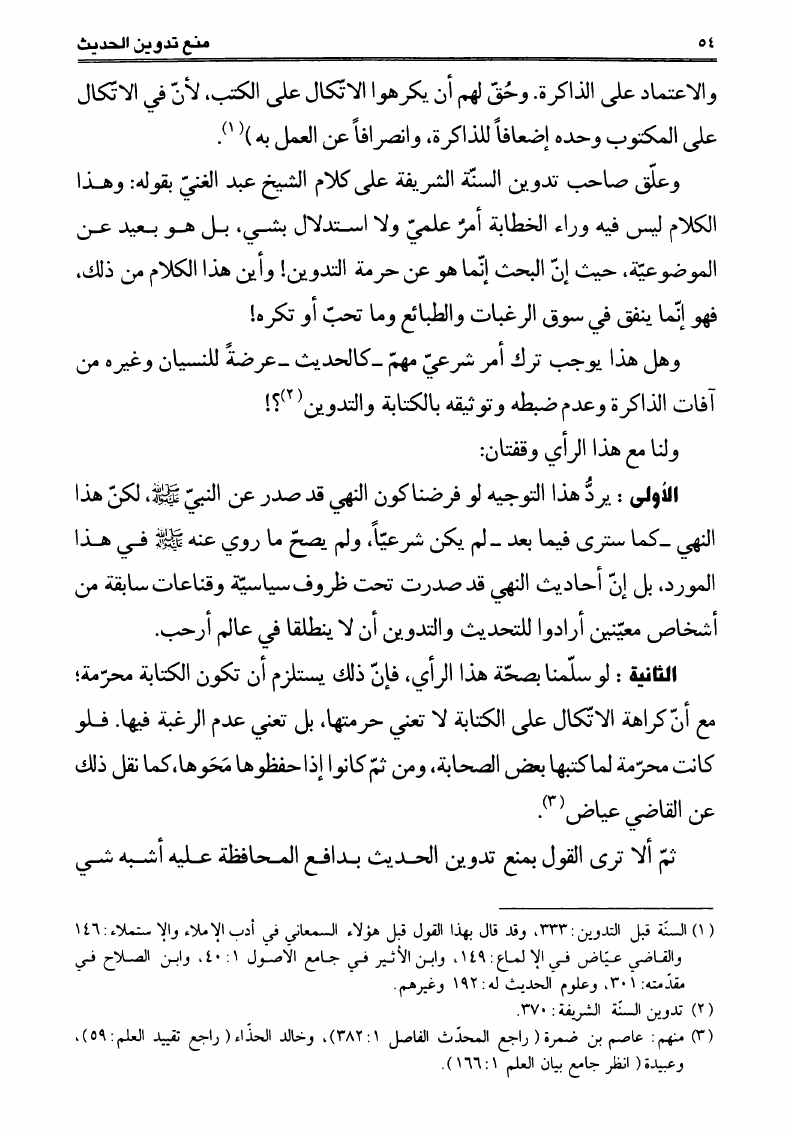 منع تدوين الحديث، قراءة في منهجة الفكر وأصول مدرستي الحديث عند المسلمين