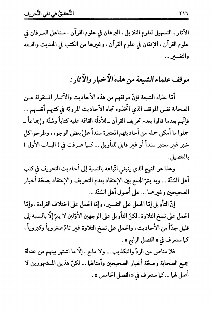 التحقيق في نفي التحريف، عن القرآن الشريف