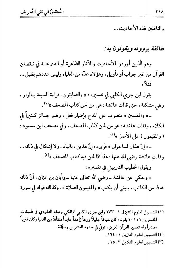 التحقيق في نفي التحريف، عن القرآن الشريف