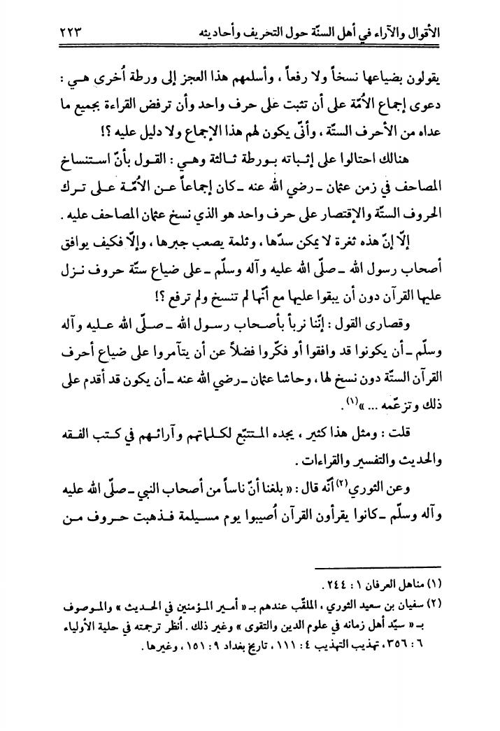التحقيق في نفي التحريف، عن القرآن الشريف