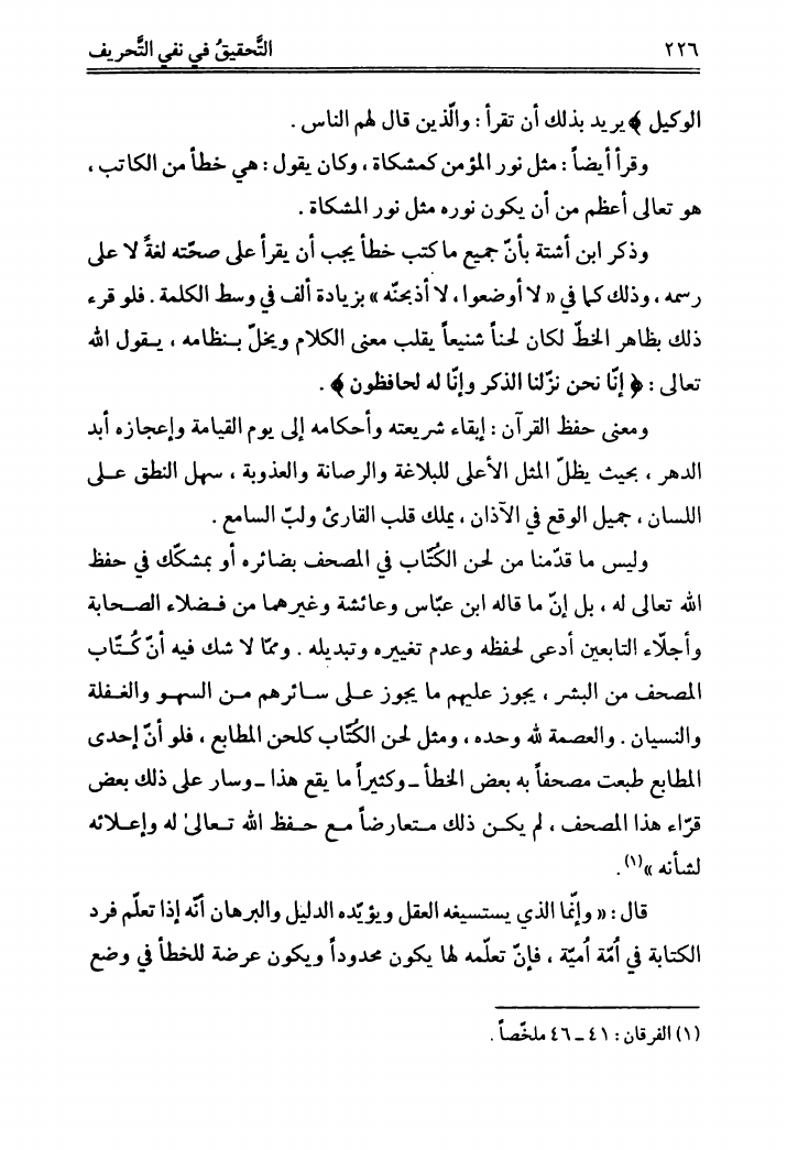 التحقيق في نفي التحريف، عن القرآن الشريف