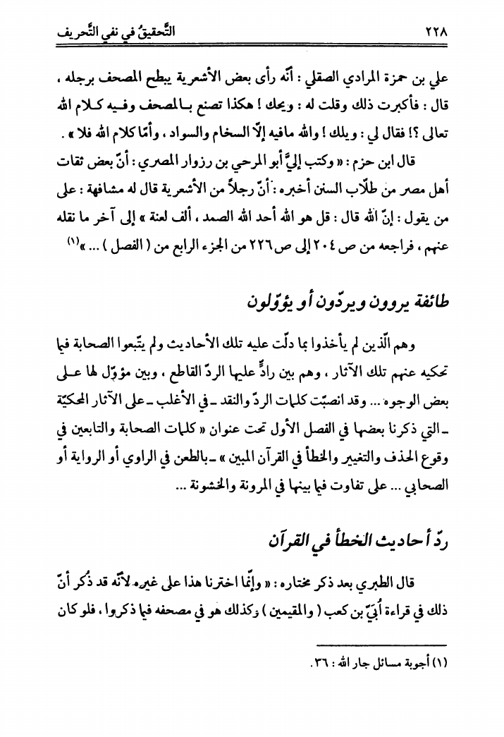 التحقيق في نفي التحريف، عن القرآن الشريف