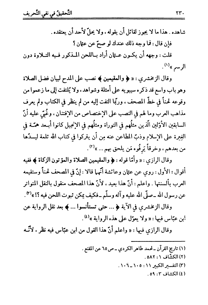 التحقيق في نفي التحريف، عن القرآن الشريف