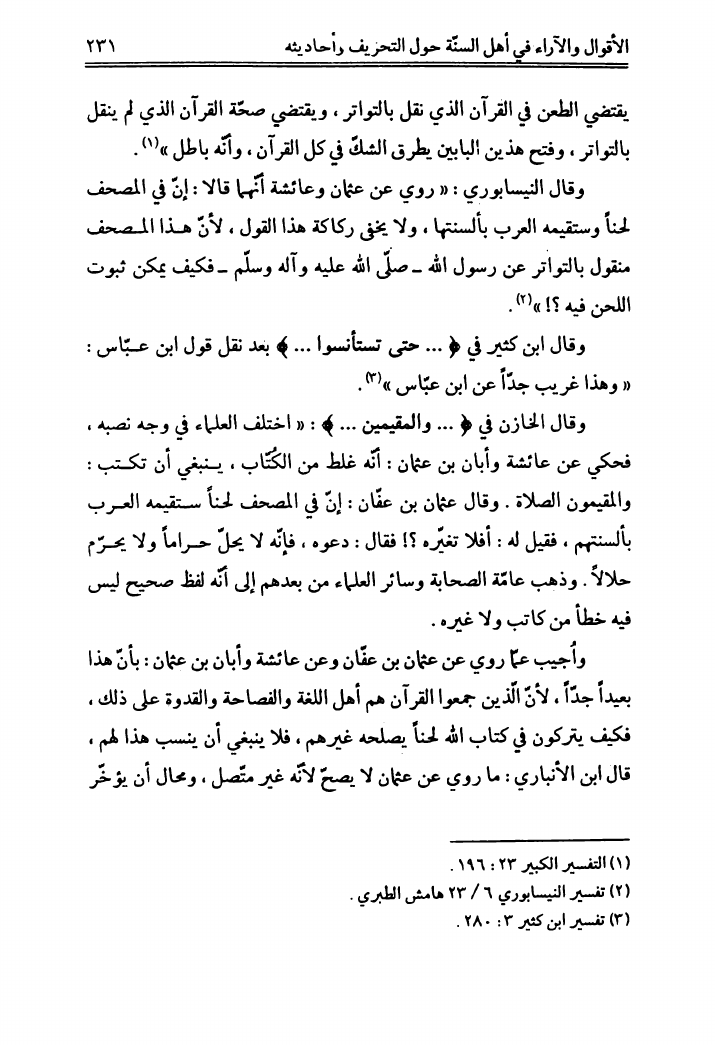 التحقيق في نفي التحريف، عن القرآن الشريف