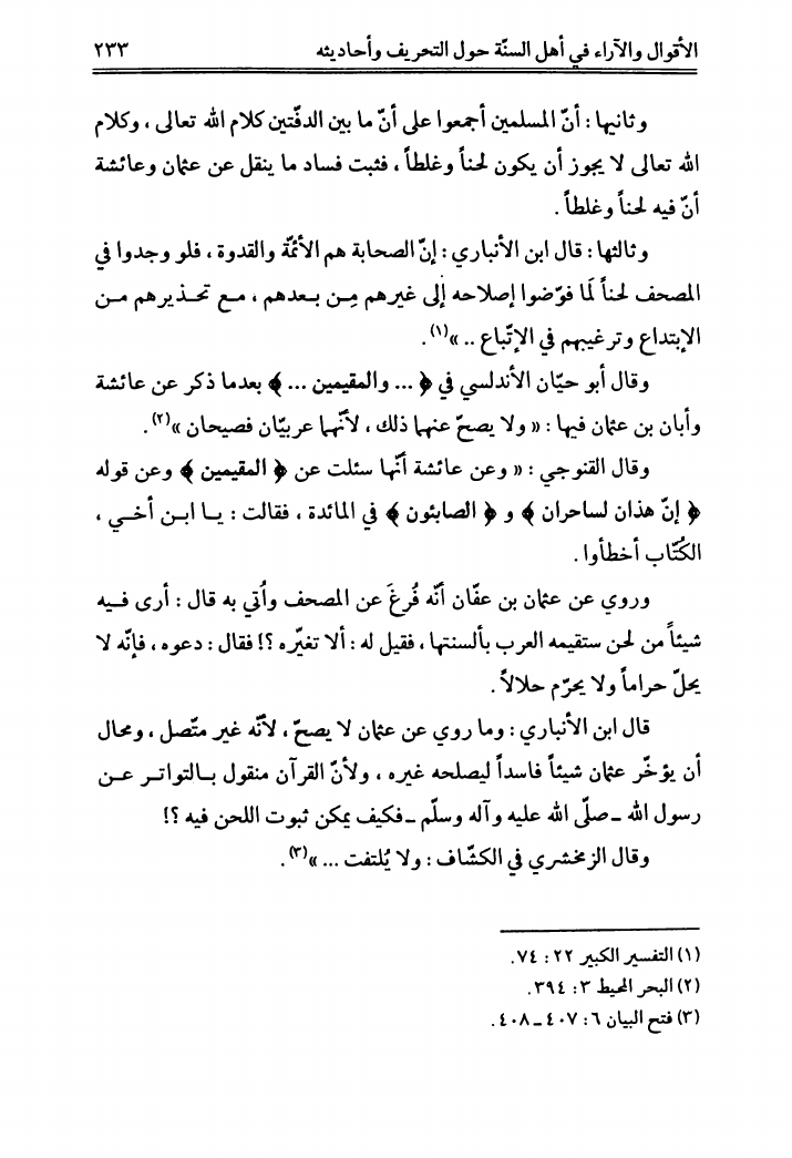 التحقيق في نفي التحريف، عن القرآن الشريف
