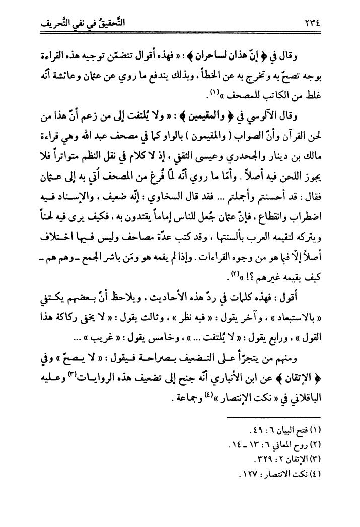 التحقيق في نفي التحريف، عن القرآن الشريف