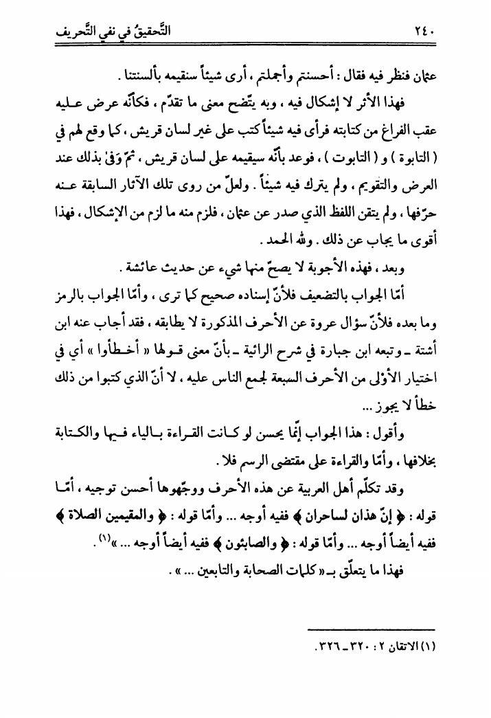التحقيق في نفي التحريف، عن القرآن الشريف