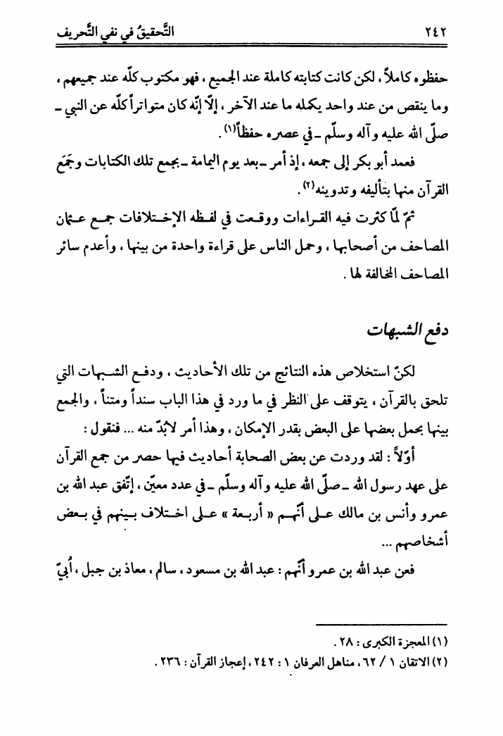 التحقيق في نفي التحريف، عن القرآن الشريف
