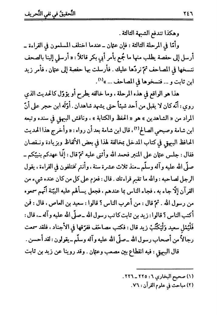 التحقيق في نفي التحريف، عن القرآن الشريف
