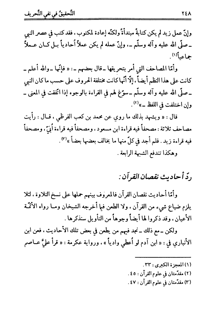 التحقيق في نفي التحريف، عن القرآن الشريف