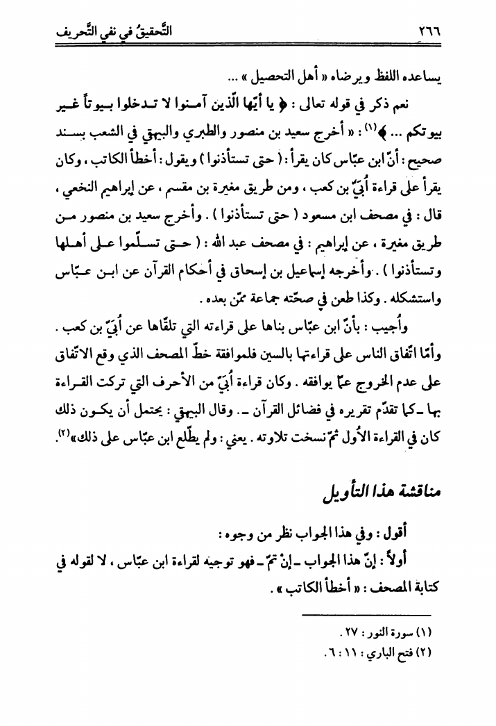 التحقيق في نفي التحريف، عن القرآن الشريف