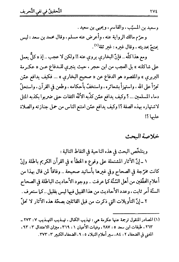 التحقيق في نفي التحريف، عن القرآن الشريف