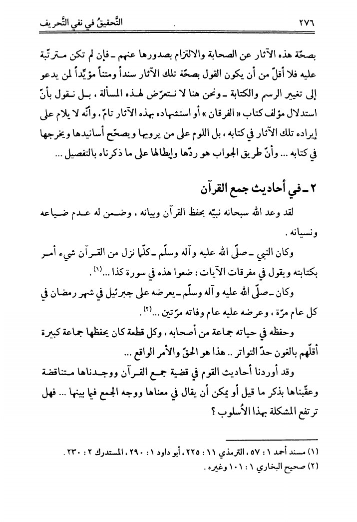 التحقيق في نفي التحريف، عن القرآن الشريف