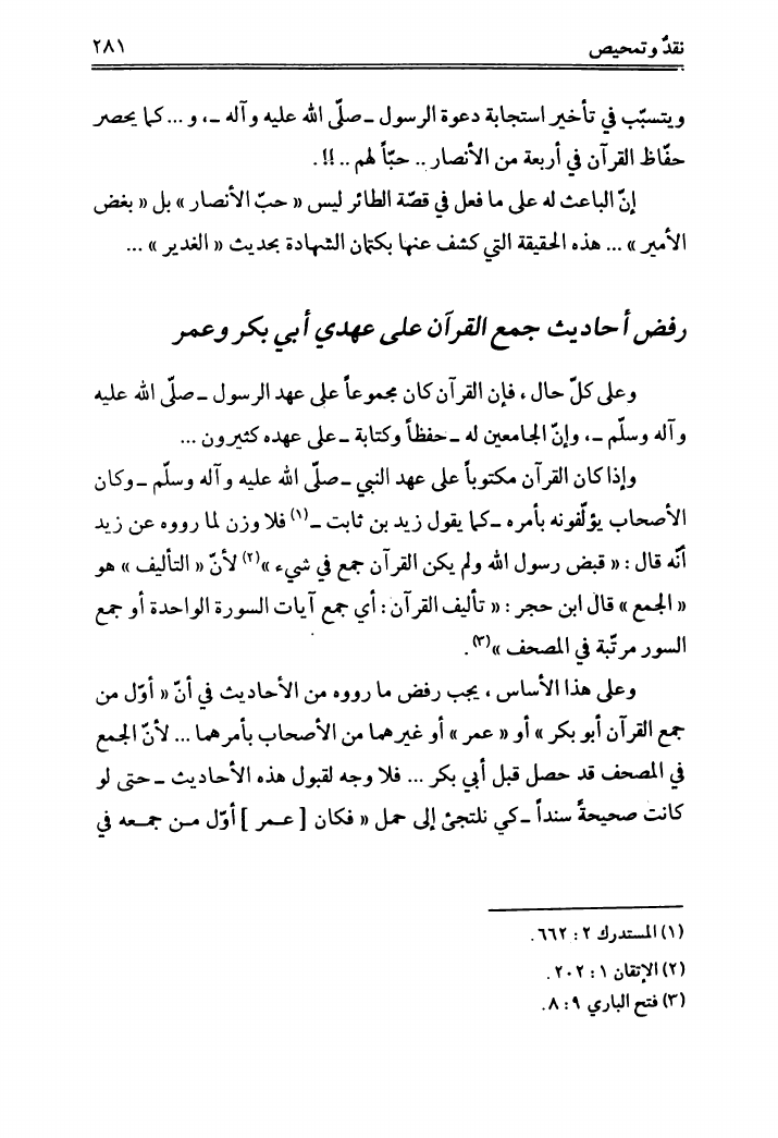 التحقيق في نفي التحريف، عن القرآن الشريف