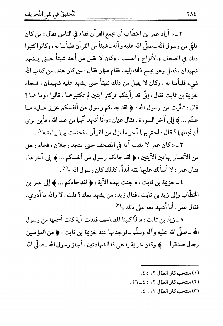التحقيق في نفي التحريف، عن القرآن الشريف