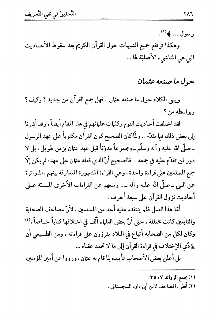 التحقيق في نفي التحريف، عن القرآن الشريف