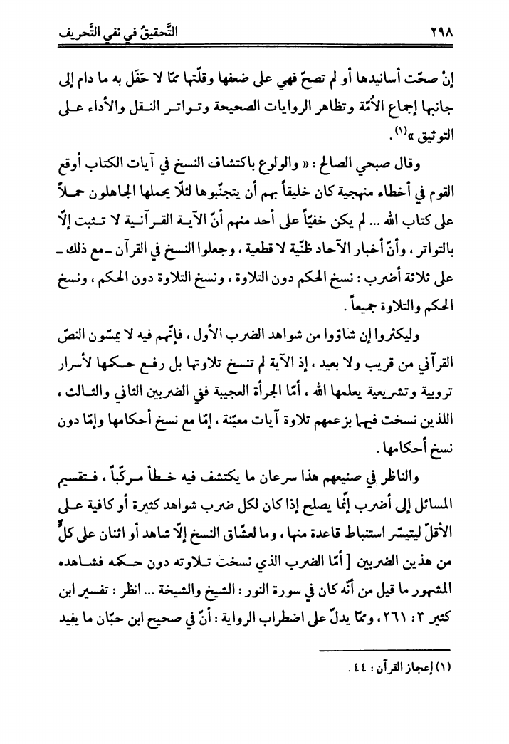 التحقيق في نفي التحريف، عن القرآن الشريف
