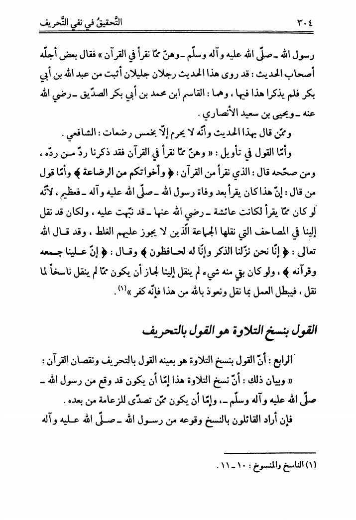التحقيق في نفي التحريف، عن القرآن الشريف