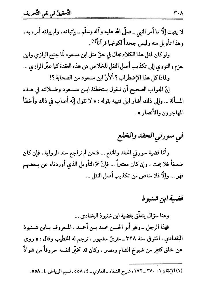 التحقيق في نفي التحريف، عن القرآن الشريف