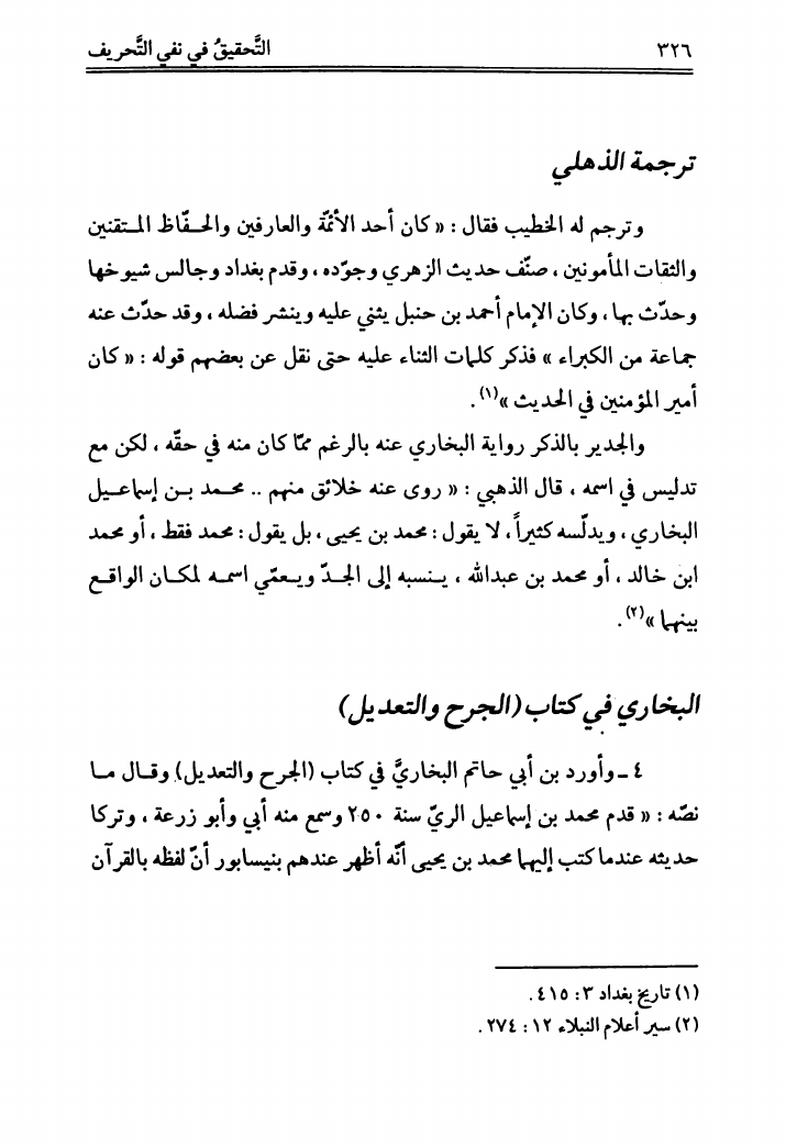 التحقيق في نفي التحريف، عن القرآن الشريف
