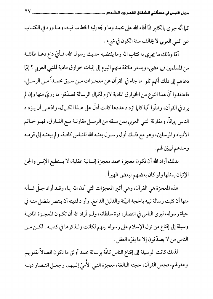 مزيل اللبس، في مسألتي شق القمر ورد الشمس