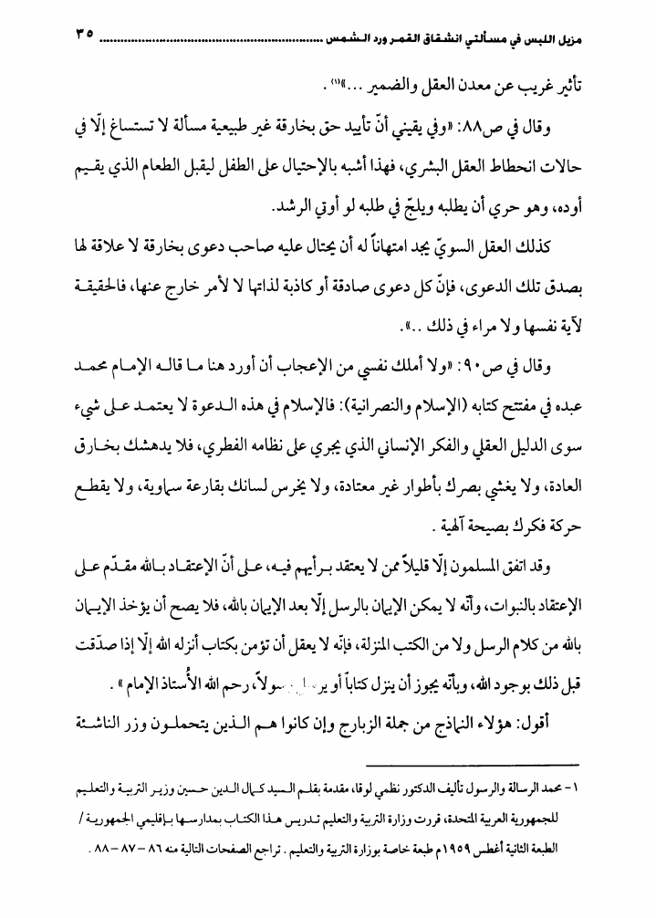 مزيل اللبس، في مسألتي شق القمر ورد الشمس