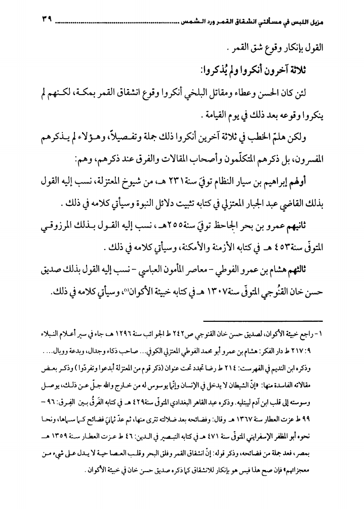 مزيل اللبس، في مسألتي شق القمر ورد الشمس