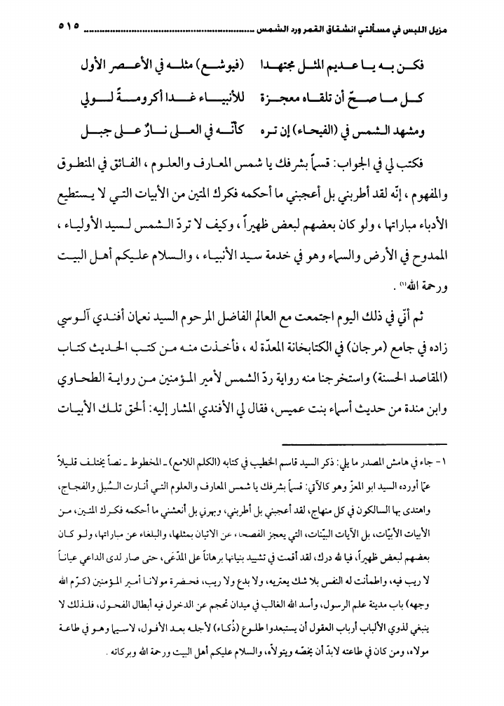 مزيل اللبس، في مسألتي شق القمر ورد الشمس