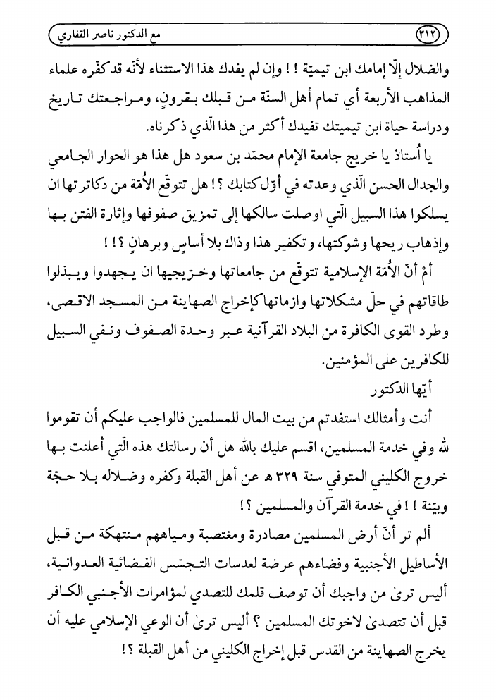 مع الدكتور ناصر القفاري في أصول مذهبه، حول القرآن الكريم والتشيع