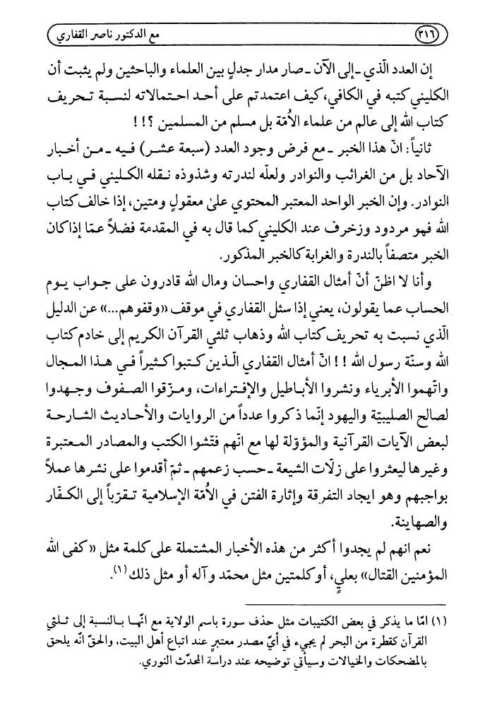 مع الدكتور ناصر القفاري في أصول مذهبه، حول القرآن الكريم والتشيع